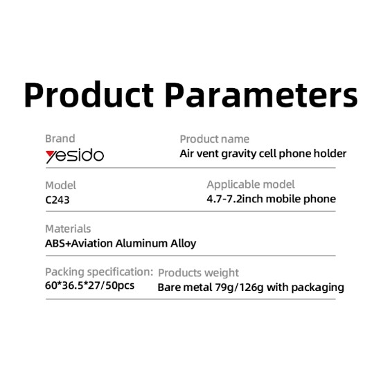 YESIDO PHONE AIR VENT BRACKET HOLDER C243