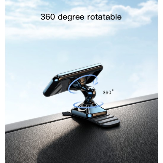 A compact magnetic phone holder designed for secure mounting on the vehicle dashboard, providing stable support and easy access.